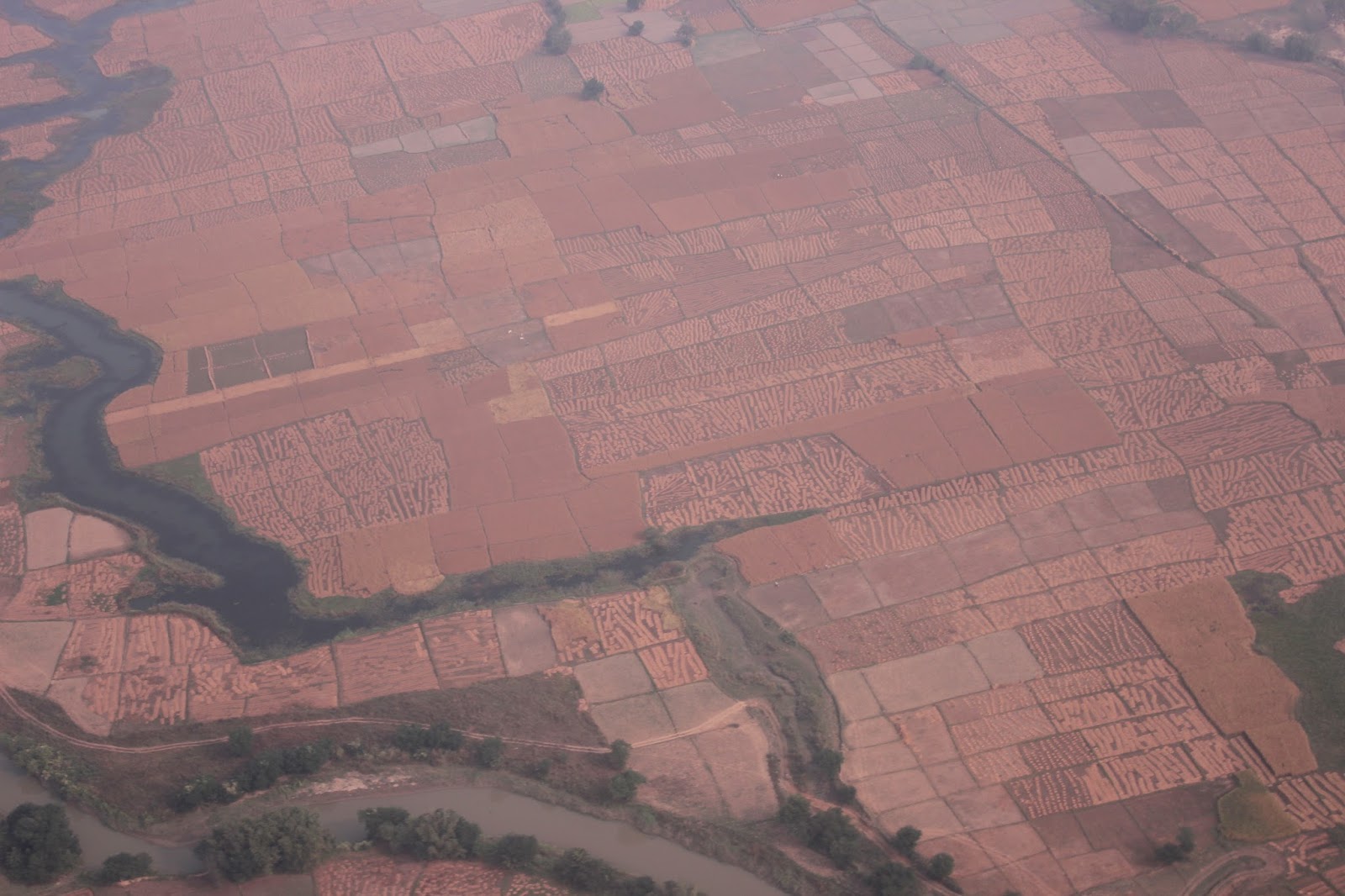 | A reminder that not all of Nepal's districts are mountainous. The flat rice paddies around Biratnagar are typical of the Tarai plains that border N. India. |